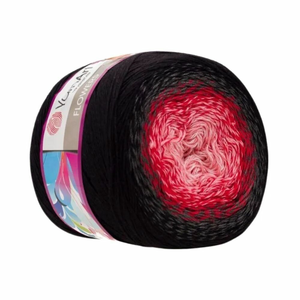 Пряжа YarnArt Flowers (ЯрнАрт Фловерс) - 1 моток цвет: 282 Черный / красный 55% хлопок, 45% полиакрил 1000м/250г