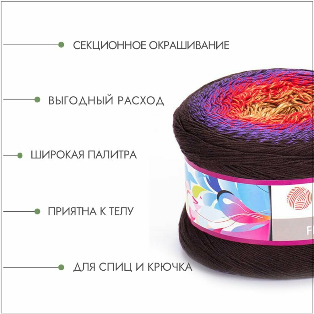 Пряжа YarnArt Flowers бордовый-фуксия-красный-оранжевый (310), 55%хлопок/45%акрил, 1000м, 250г, 1шт