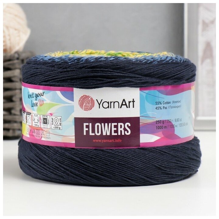СохранитьПряжа YarnArt Flowers темно синий-желтый-зеленый-серый (250), 55%хлопок/45%акрил, 1000м, 250г, 1шт интересное: