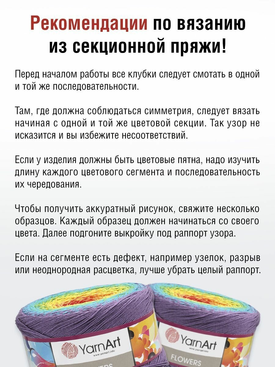 СохранитьПряжа для вязания YarnArt 'Flowers' 250г, 1000м (55% хлопок, 45% полиакрил) (277 секционный), 2 мотка интересное: