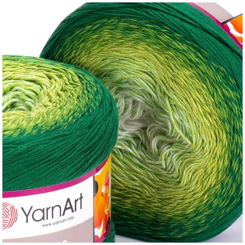 Купить Пряжа YarnArt Flowers зеленый-салатовый-белый (283), 55%хлопок/45%акрил, 1000м, 250г, 2шт