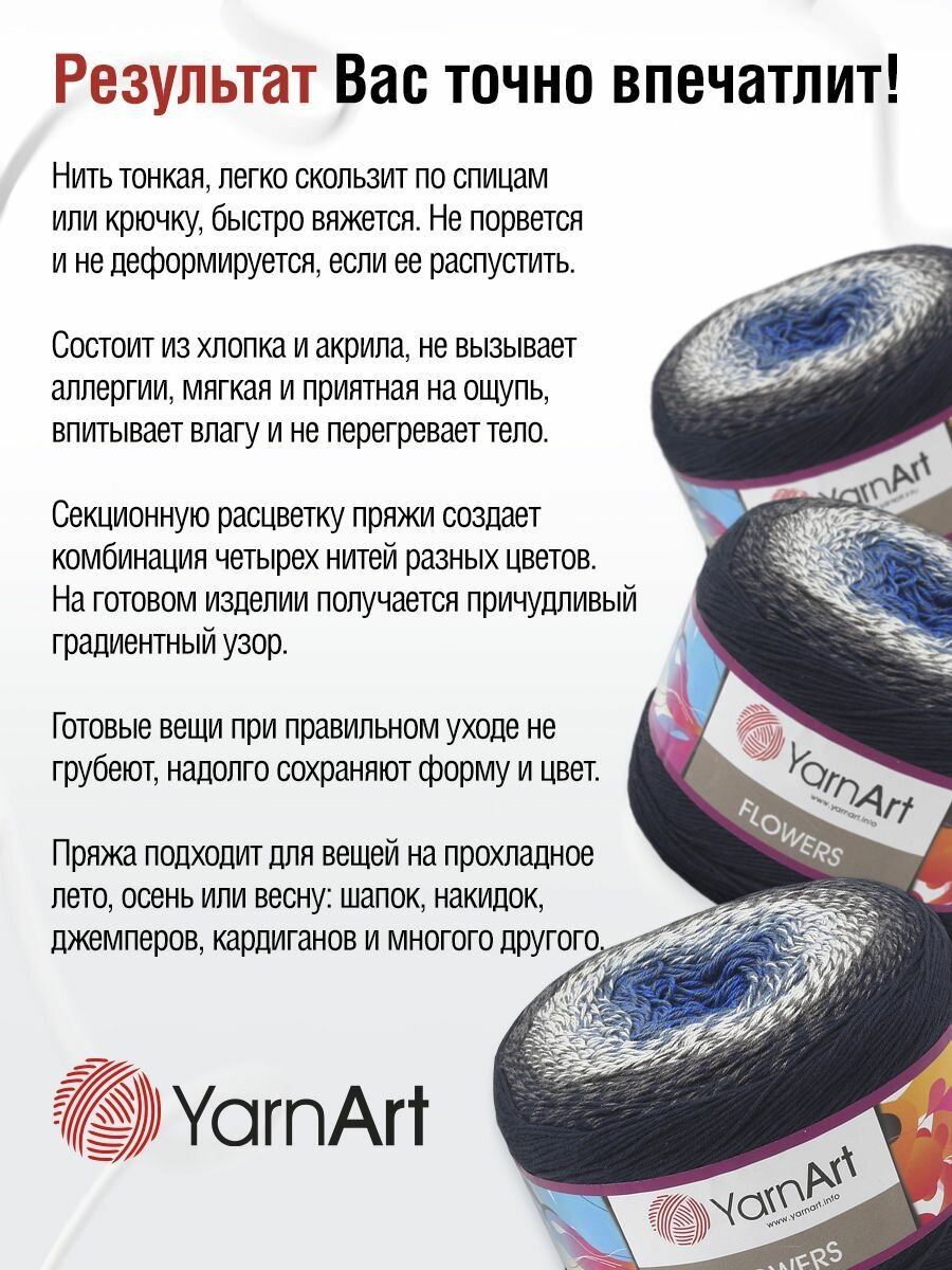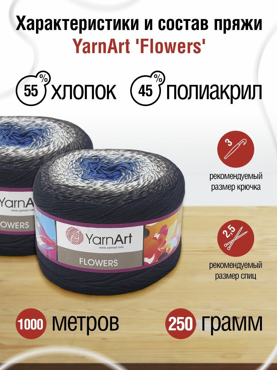 Пряжа для вязания YarnArt 'Flowers' 250г, 1000м (55% хлопок, 45% полиакрил) (264 секционный), 2 мотка