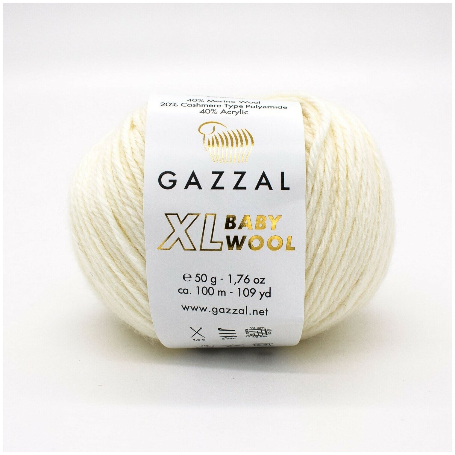 Купить Пряжа Gazzal Baby Wool XL экрю (829), 40%шерсть мериноса/20%кашемирПА/40%акрил, 100м, 50г, 2шт