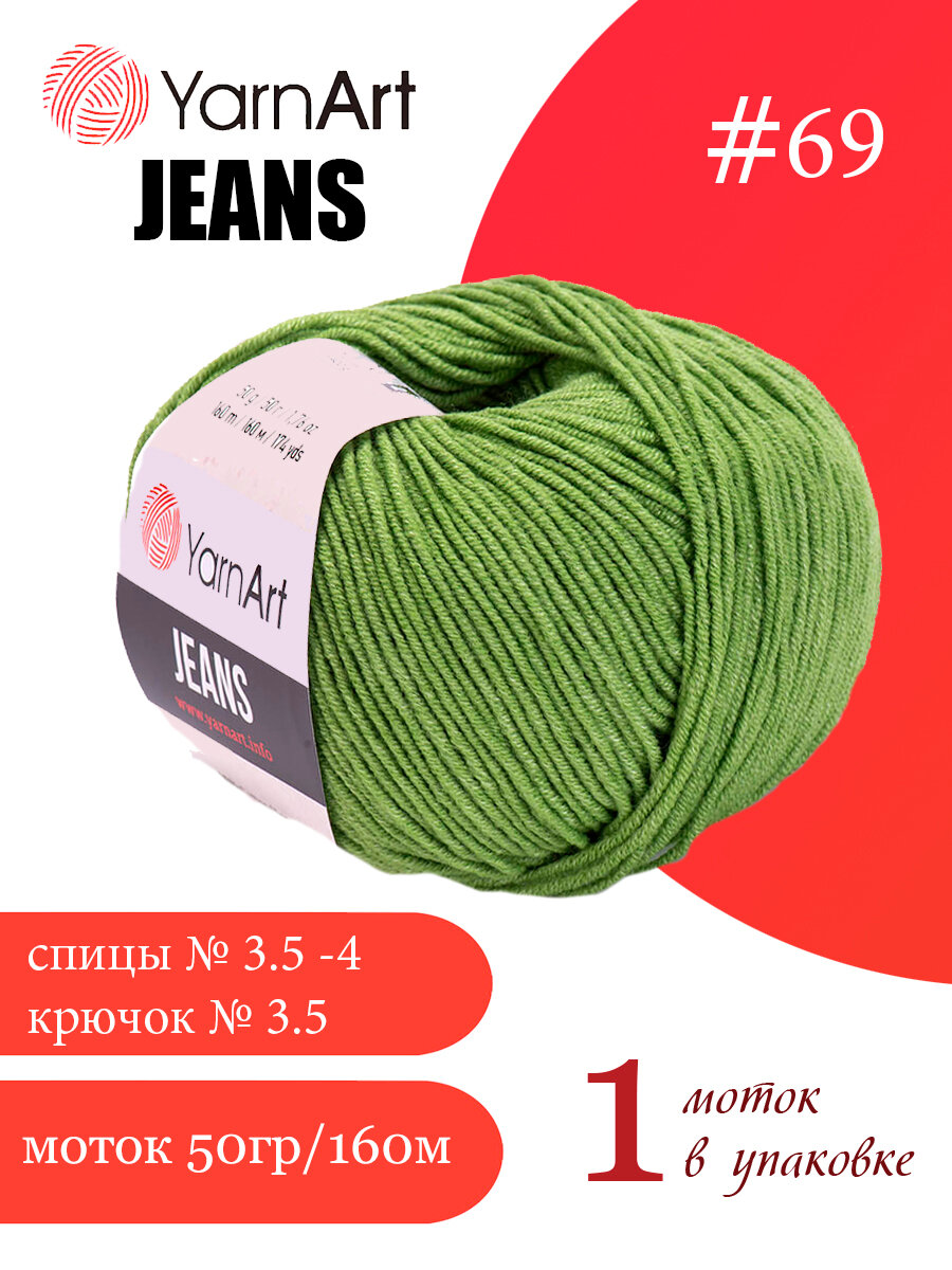СохранитьПряжа YarnArt Jeans Ярнарт Джинс, 69 зелень, 55 % хлопок, 45 % акрил, 50 г, 160 м, 1 моток. интересное: