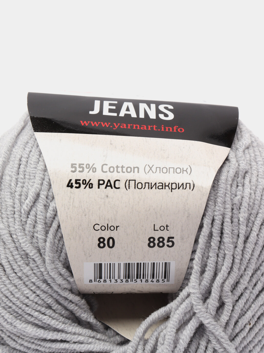 Купить Пряжа YarnArt Jeans Ярнарт Джинс, 80 серебристый, 55 % хлопок, 45 % акрил, 50 г, 160 м, 1 моток.