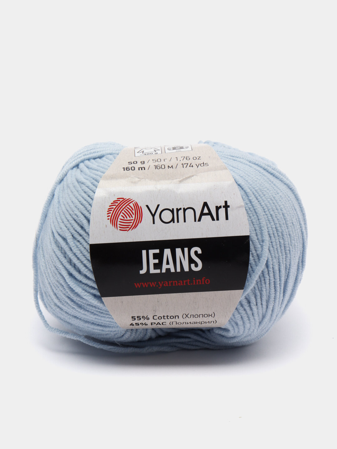 СохранитьПряжа YarnArt Jeans Ярнарт Джинс, 75 небесно голубой, 55 % хлопок, 45 % акрил, 50 г, 160 м, 1 моток. интересное: