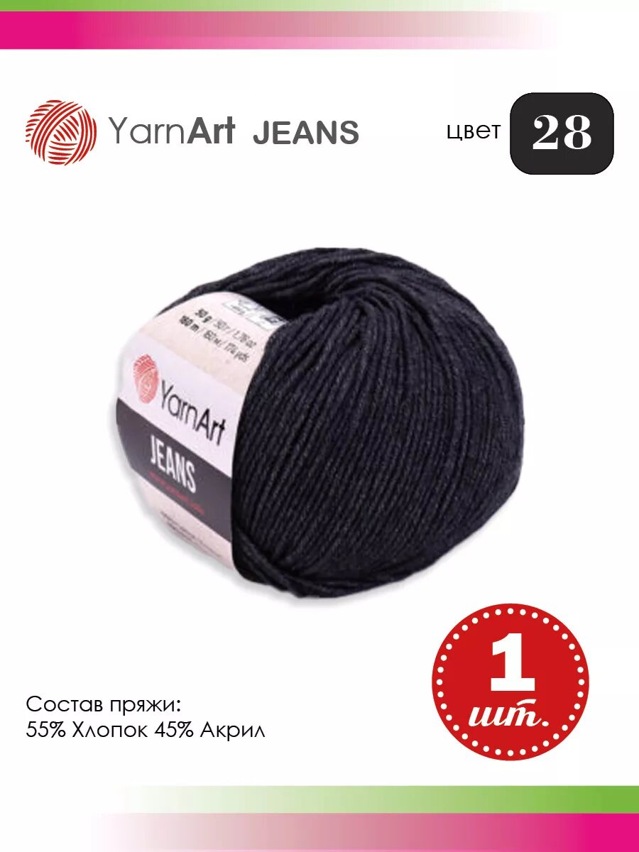 Купить Пряжа YarnArt Jeans Ярнарт Джинс, 28 графит, 55 % хлопок, 45 % акрил, 50 г, 160 м, 1 моток.
