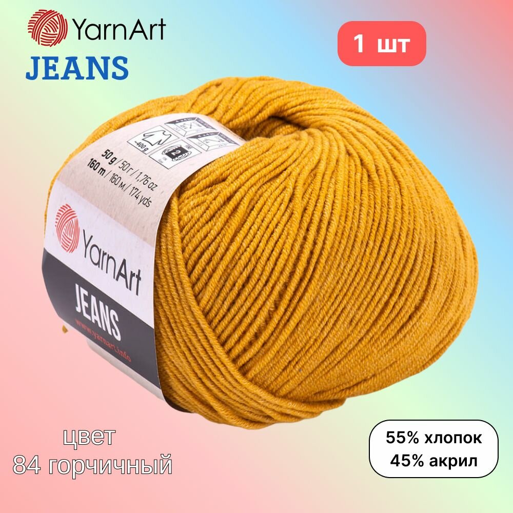 Купить Пряжа YarnArt Jeans Ярнарт Джинс, 84 горчица, 55 % хлопок, 45 % акрил, 50 г, 160 м, 1 моток.