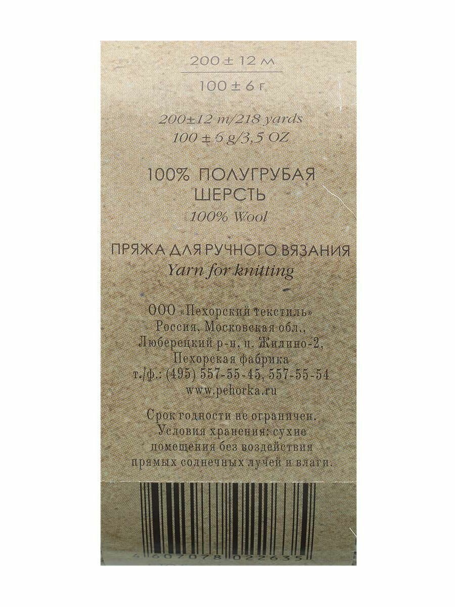 Пряжа Овечья шерсть Пехорка (166), 100 г, 200 м, 100% шерсть, (2 шт.)