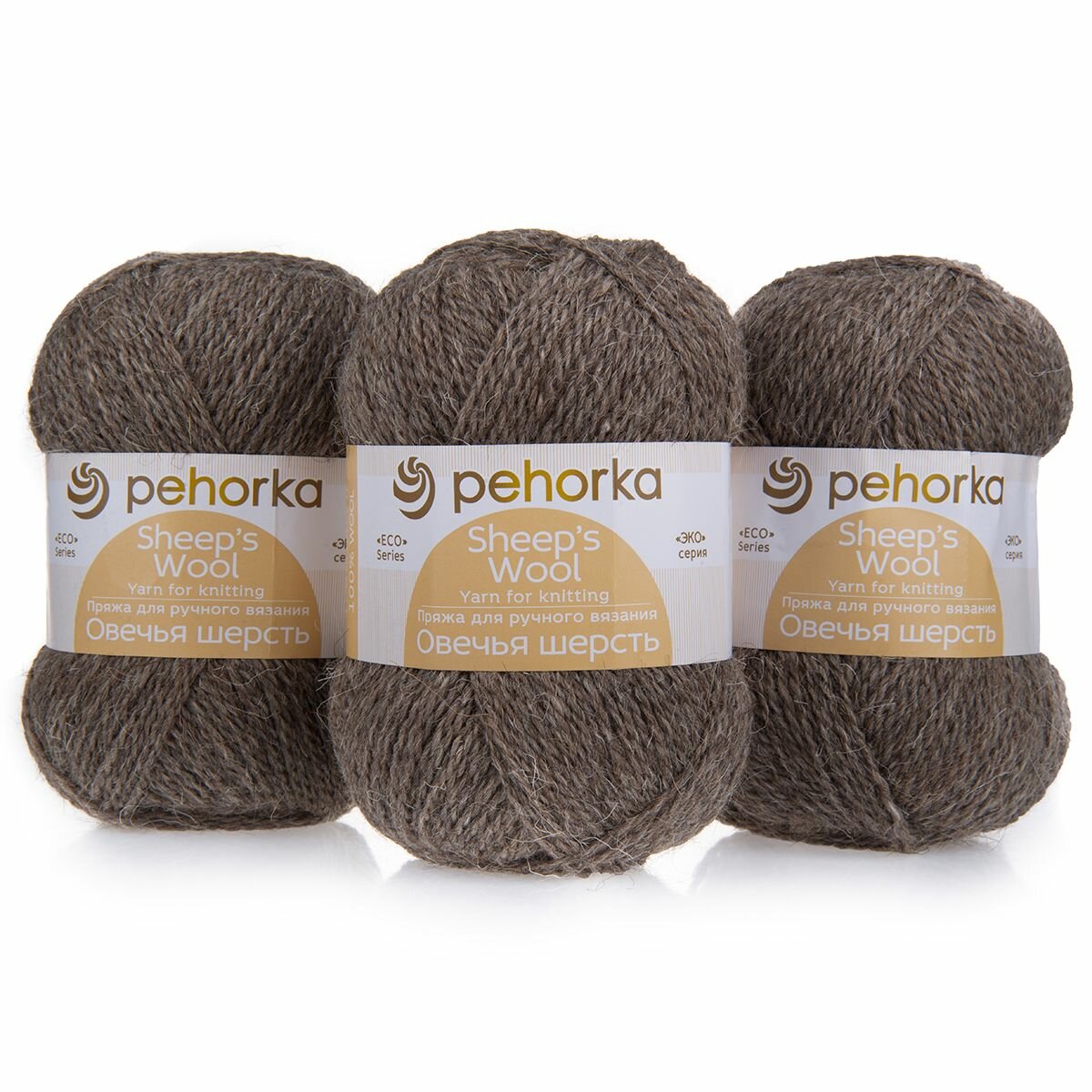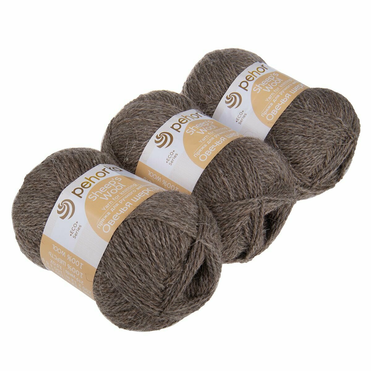 Пряжа Пехорка Овечья шерсть цвет 251 коричневый (100г/200м, упаковка 10 мотков)