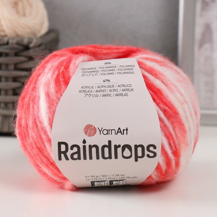 Пряжа Raindrops 18% шерсть, 35% полиамид, 47% акрил 115м/50гр (2908 коралловый меланж ) интересное: