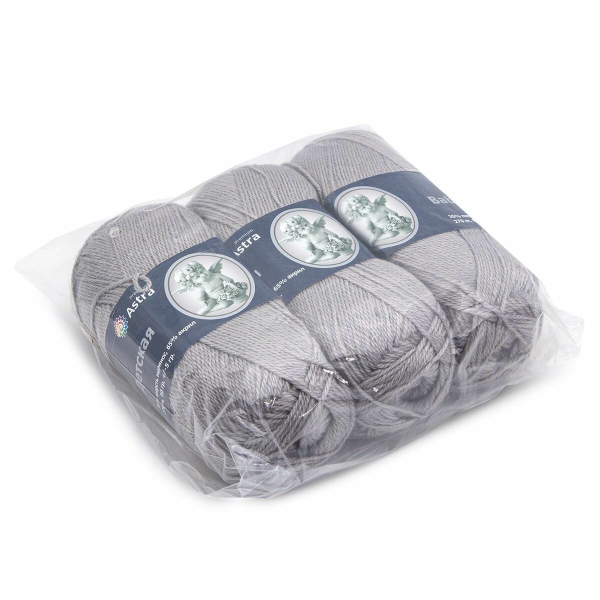 Пряжа для вязания Astra Premium 'Детская', 90г, 270м (35% шерсть меринос, 65% акрил) (008 серебристый), 3 мотка