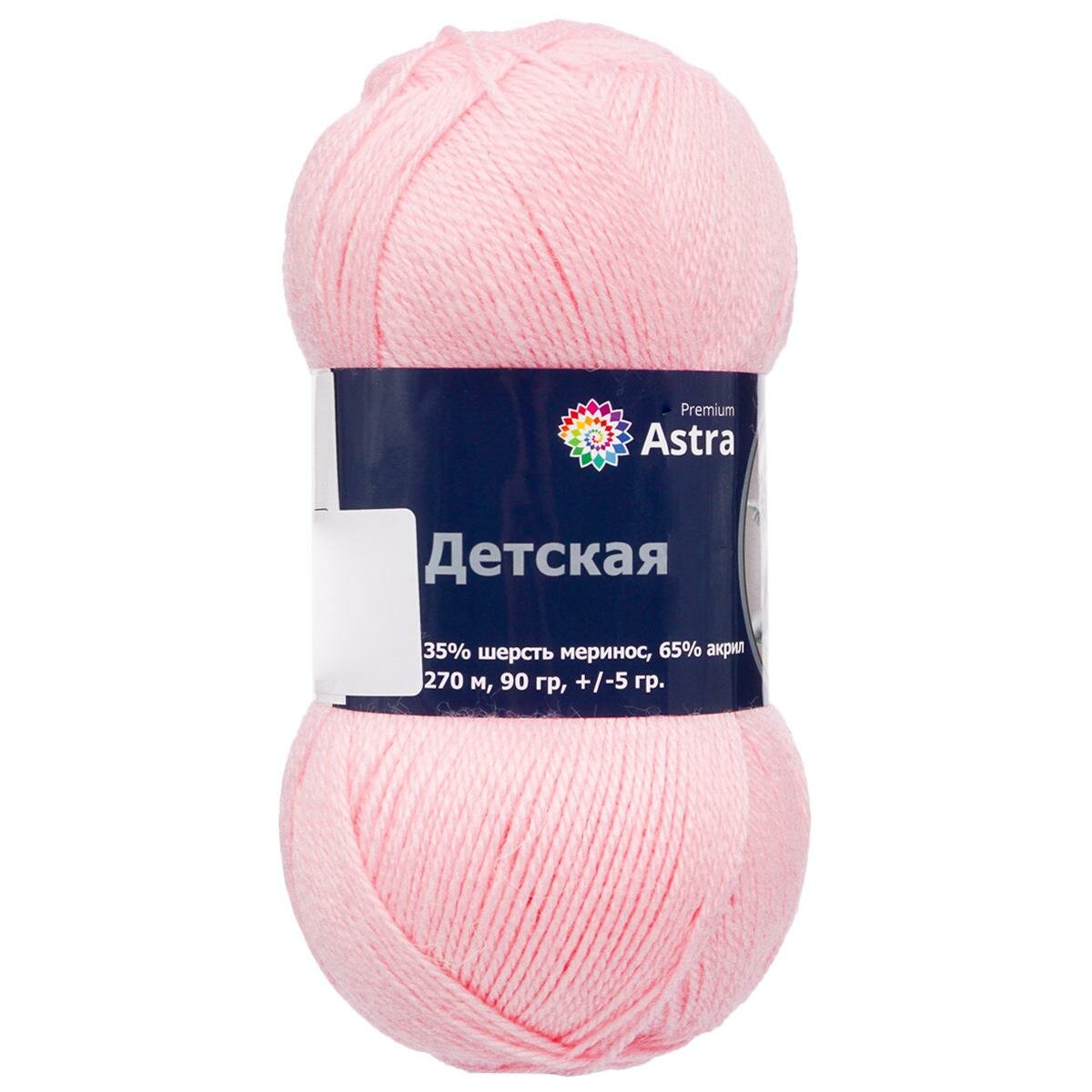 Пряжа для вязания Astra Premium 'Детская', 90г, 270м (35% шерсть меринос, 65% акрил) (пудра), 3 мотка