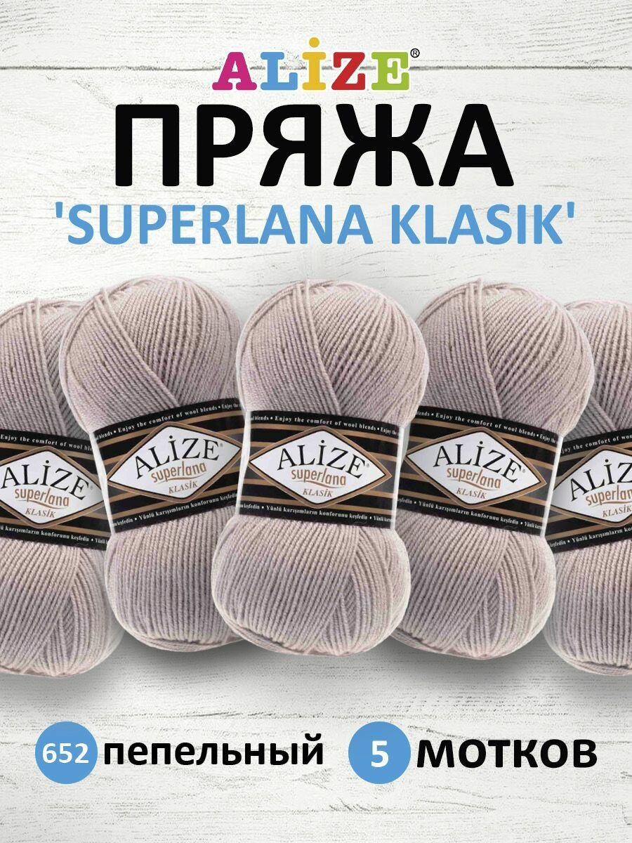 Купить Пряжа для вязания ALIZE 'Superlana klasik' (однотонная), 100г, 280м (75% акрил, 25% шерсть), ТУ (652 пепельный), 5 мотков