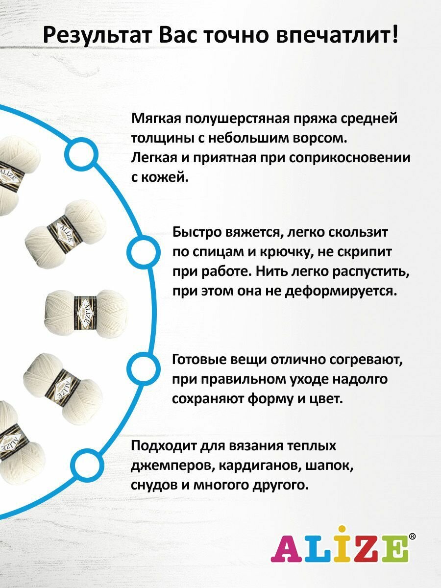 СохранитьПряжа для вязания ALIZE 'Superlana klasik' (однотонная), 100г, 280м (75% акрил, 25% шерсть), ТУ (599 слоновая кость), 5 мотков интересное: