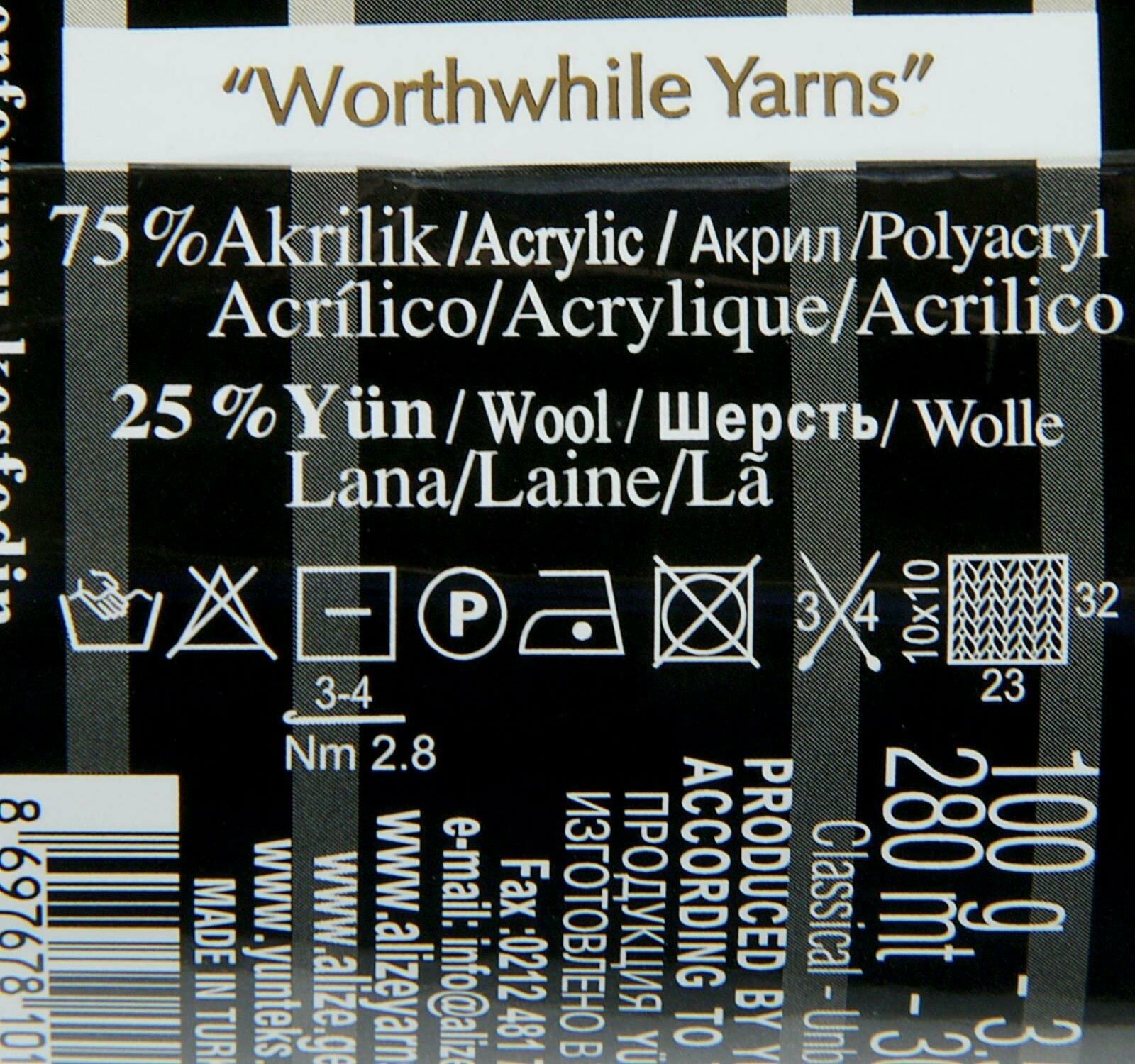Пряжа Alize Wooltime (Вултайм) - 3 мотка Цвет: 60 черный 75% шерсть, 25% полиамид, 100г 200м