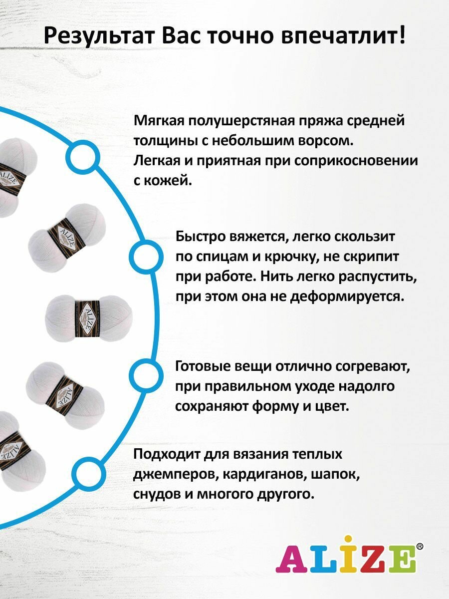 СохранитьПряжа для вязания ALIZE 'Superlana klasik' (однотонная), 100г, 280м (75% акрил, 25% шерсть), ТУ (55 белый), 5 мотков интересное: