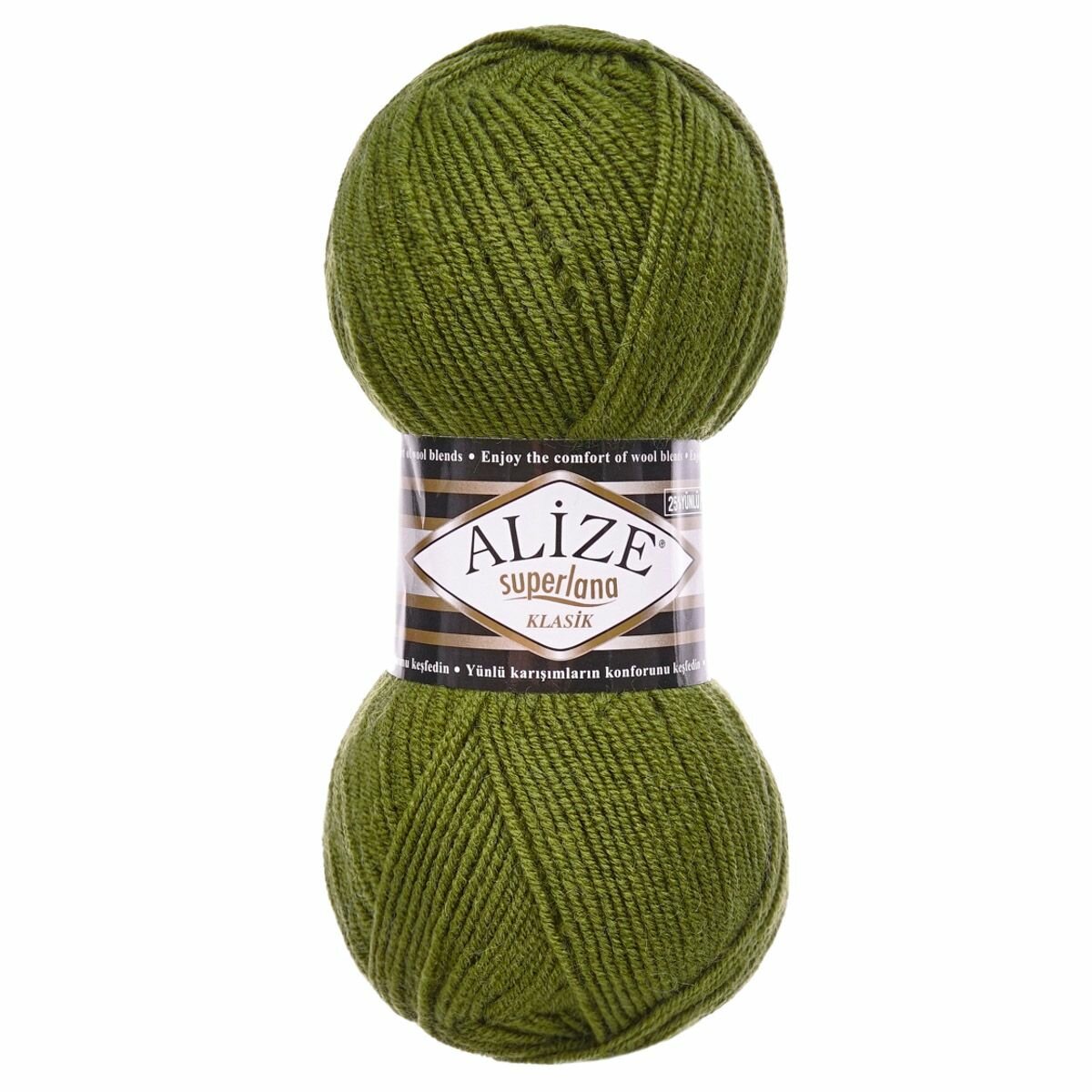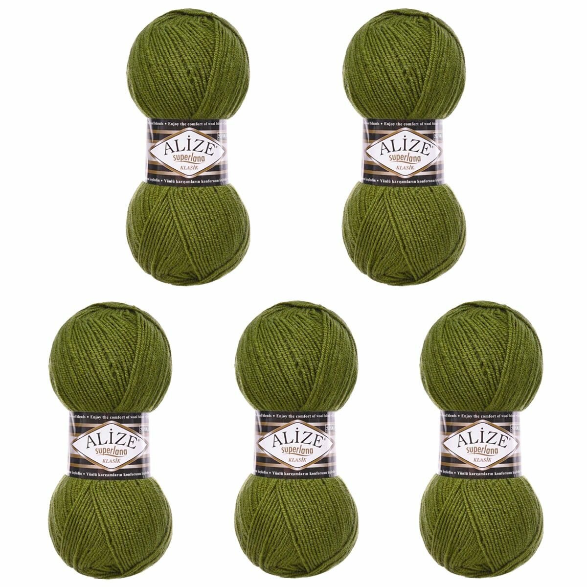 Купить Пряжа Alize Superlana klasik оливковый (620), 25%шерсть/75%акрил, 280м, 100г, 5шт