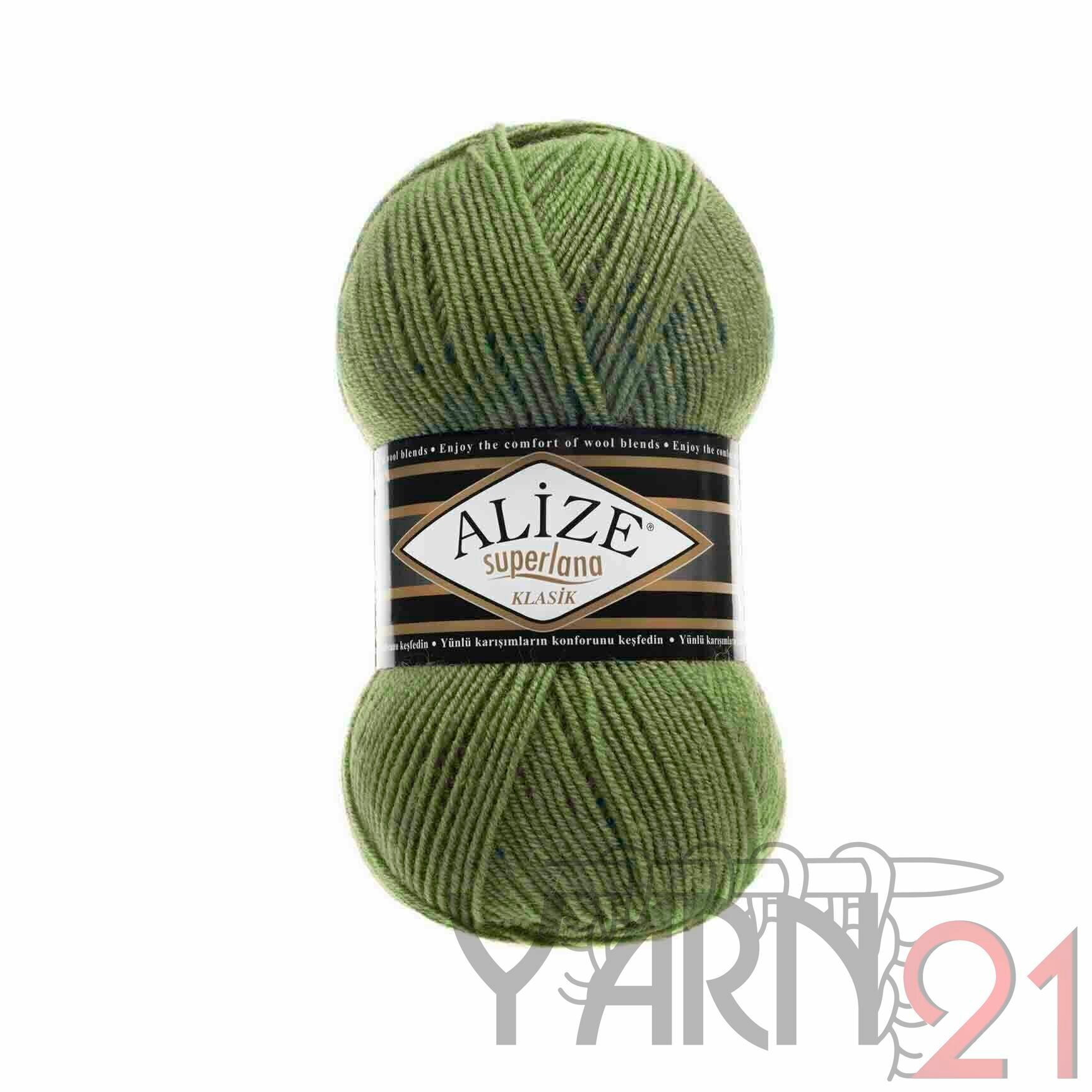 Пряжа Alize Superlana klasik (Суперлана Классик) - 2 мотка 138 зеленый миндаль 25% шерсть, 75% акрил 280м/100г