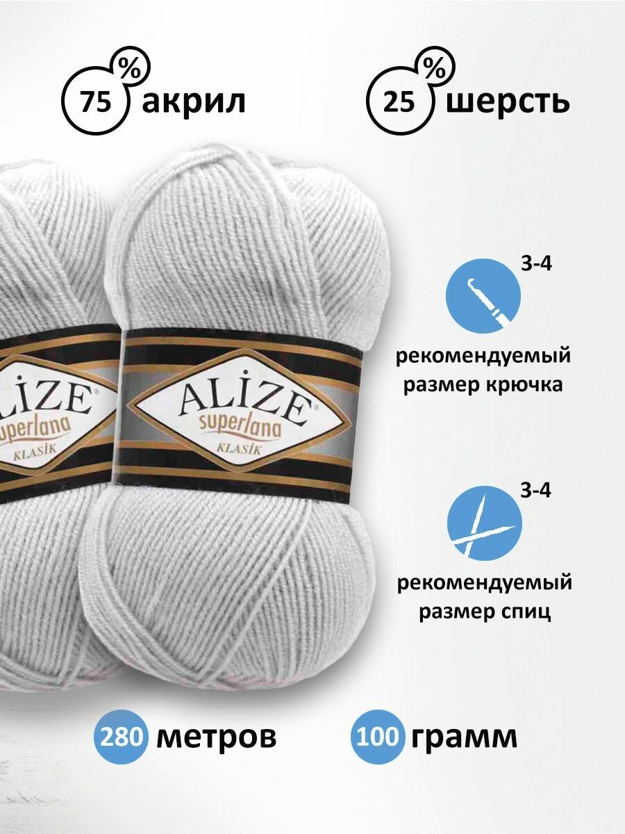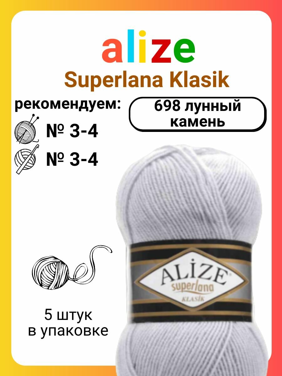 Купить Пряжа Alize Superlana klasik лунный камень (698), 25%шерсть/75%акрил, 280м, 100г, 5шт