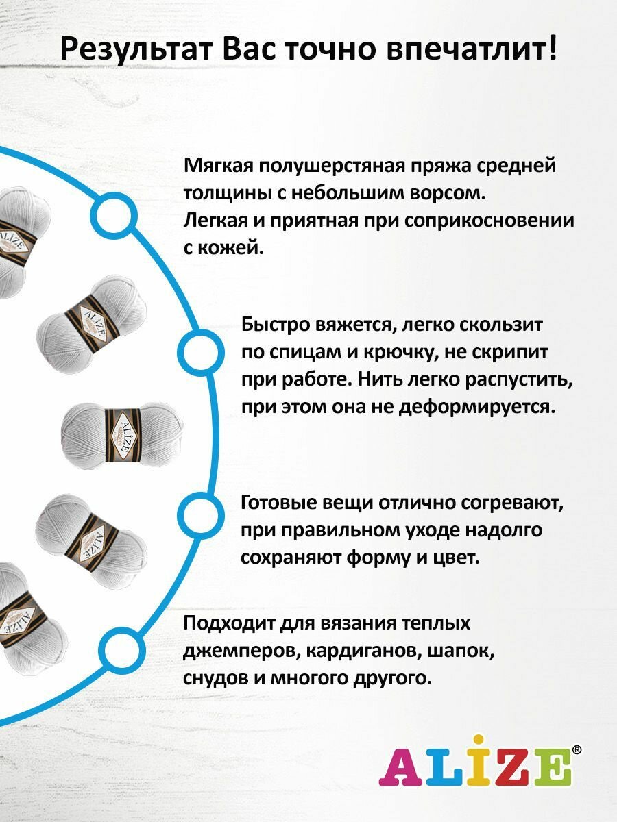 СохранитьПряжа Alize Superlana klasik лунный камень (698), 25%шерсть/75%акрил, 280м, 100г, 5шт интересное: