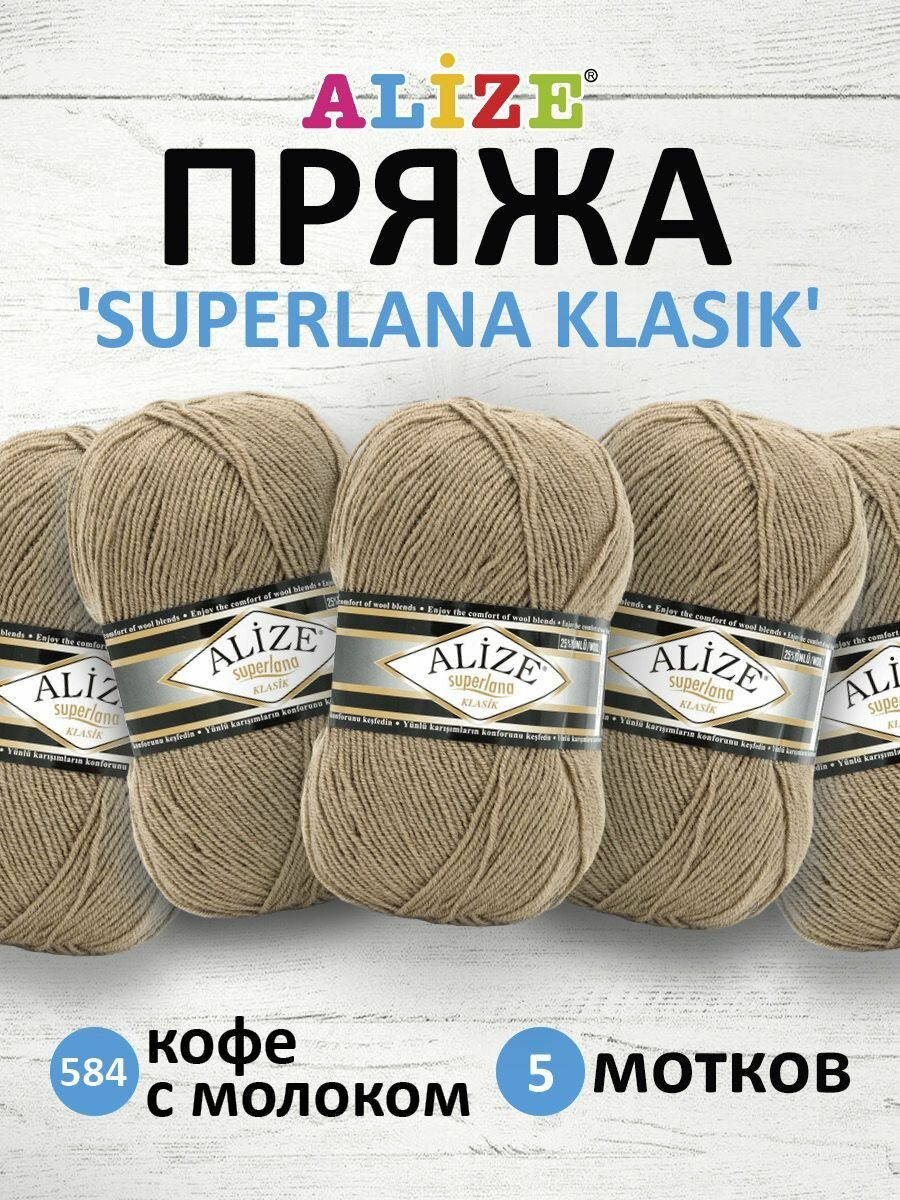 Купить Пряжа для вязания ALIZE 'Superlana klasik' (однотонная), 100г, 280м (75% акрил, 25% шерсть), ТУ (584 кофе с молоком), 5 мотков