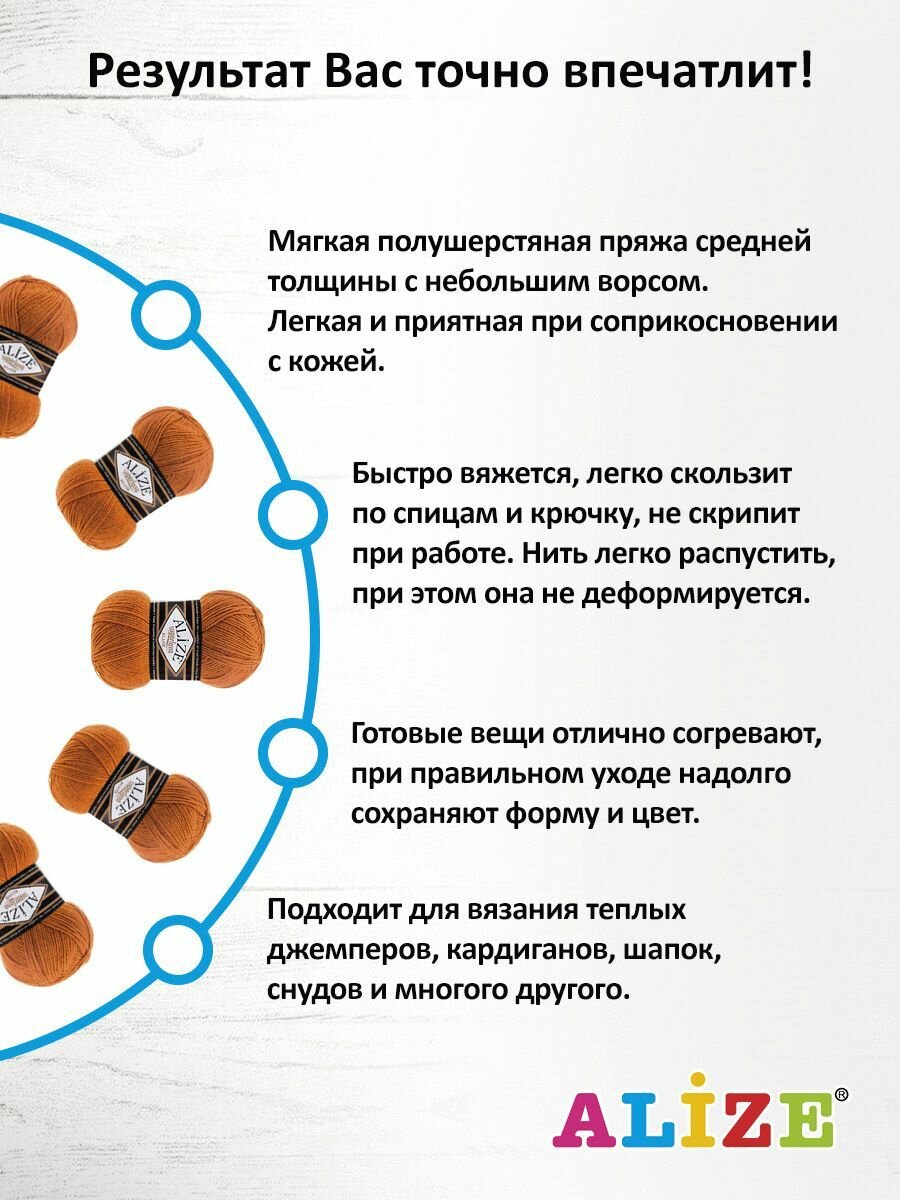 СохранитьПряжа для вязания ALIZE 'Superlana klasik' (однотонная), 100г, 280м (75% акрил, 25% шерсть), ТУ (234 оранжевый), 5 мотков интересное: