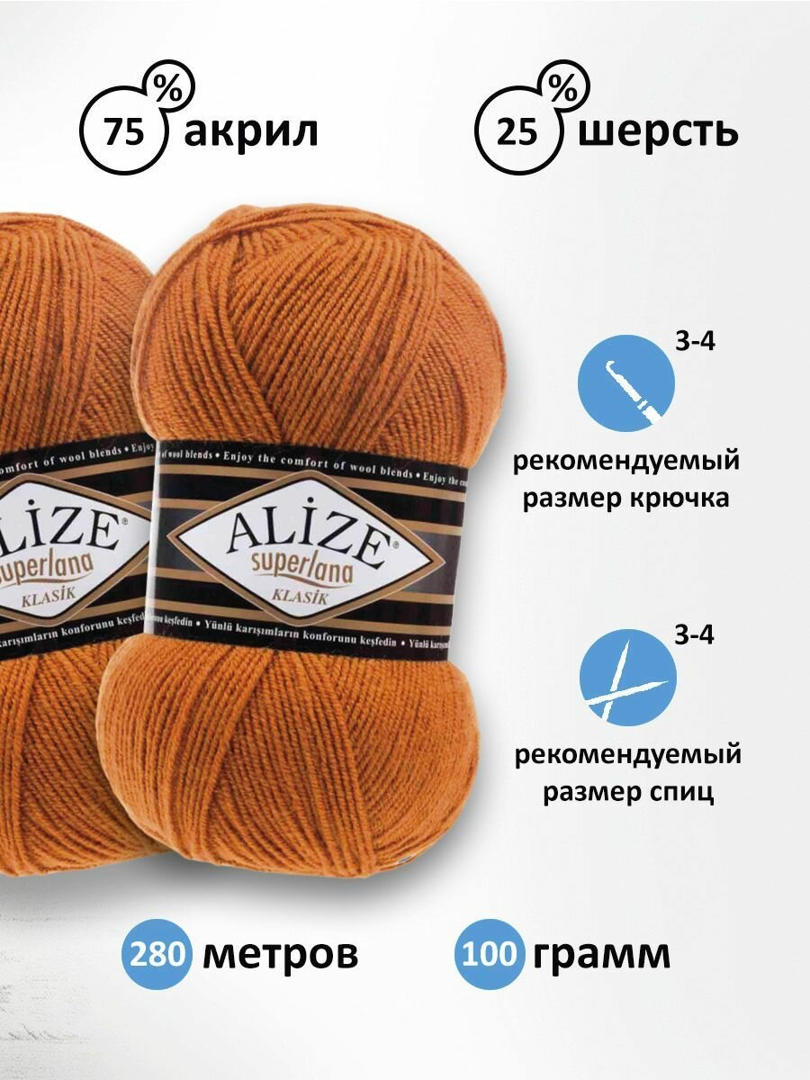Пряжа Superlana Klasik Alize (466), 100г, 280м, 75% акрил, 25% шерсть (2 шт.)