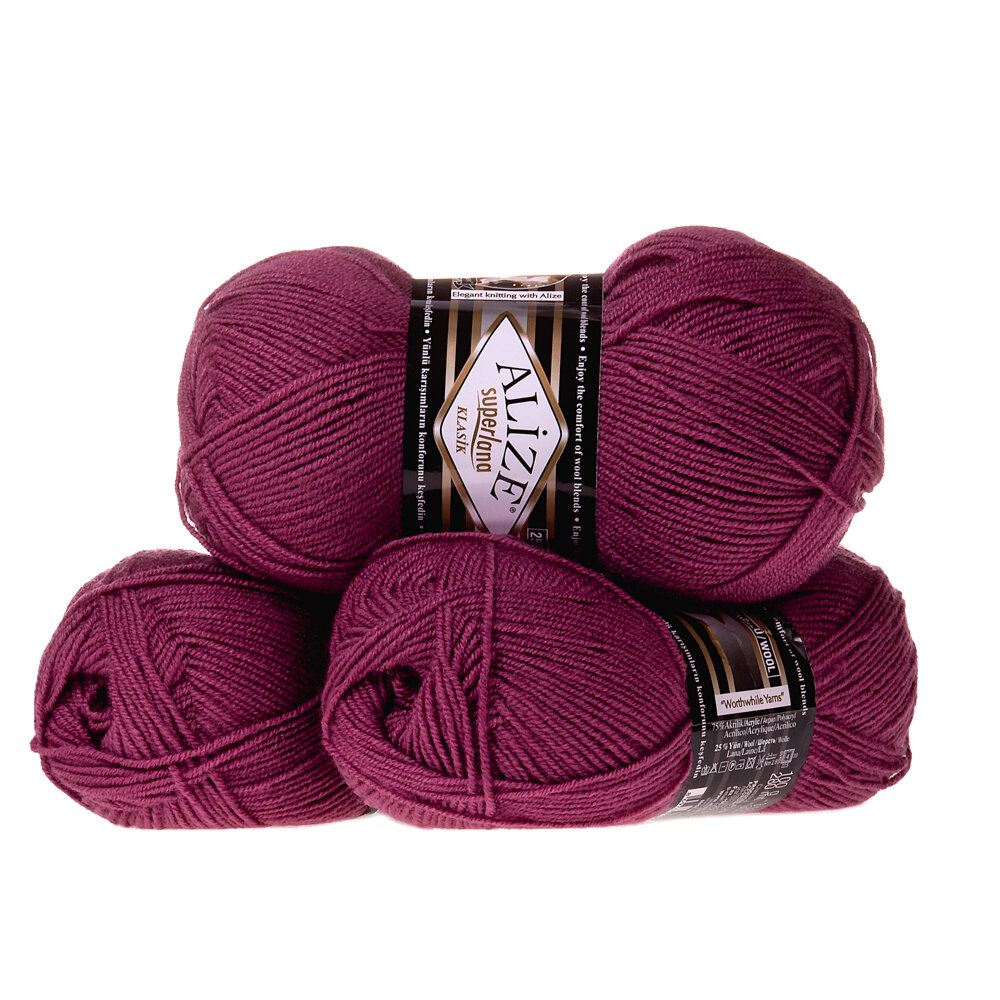 Купить Пряжа Alize Superlana klasik тёмная роза (440), 25%шерсть/75%акрил, 280м, 100г, 3шт