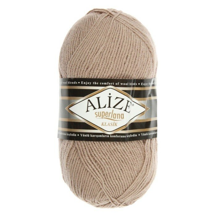 Пряжа Alize Superlana klasik (Ализе Суперлана Классик) - 2 мотка 466 темно-бежевый 25% шерсть, 75% акрил 100г/280м