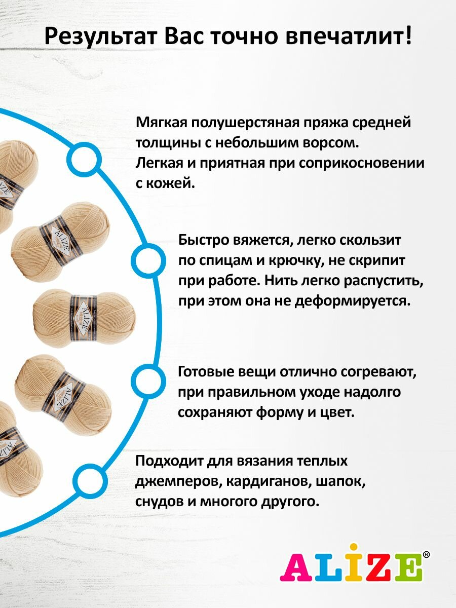 СохранитьПряжа для вязания ALIZE 'Superlana klasik' (однотонная), 100г, 280м (75% акрил, 25% шерсть), ТУ (826 песочный), 5 мотков интересное: