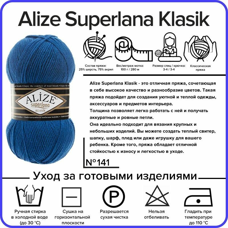 Купить Пряжа Alize Superlana klasik василек (141), 25%шерсть/75%акрил, 280м, 100г, 3шт