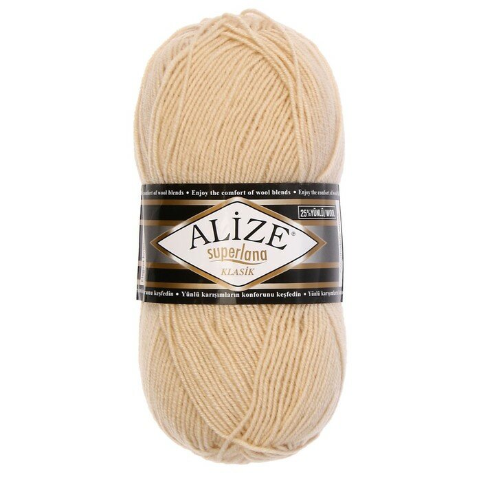 СохранитьПряжа Alize Superlana klasik шампань (310), 25%шерсть/75%акрил, 280м, 100г, 1шт интересное: