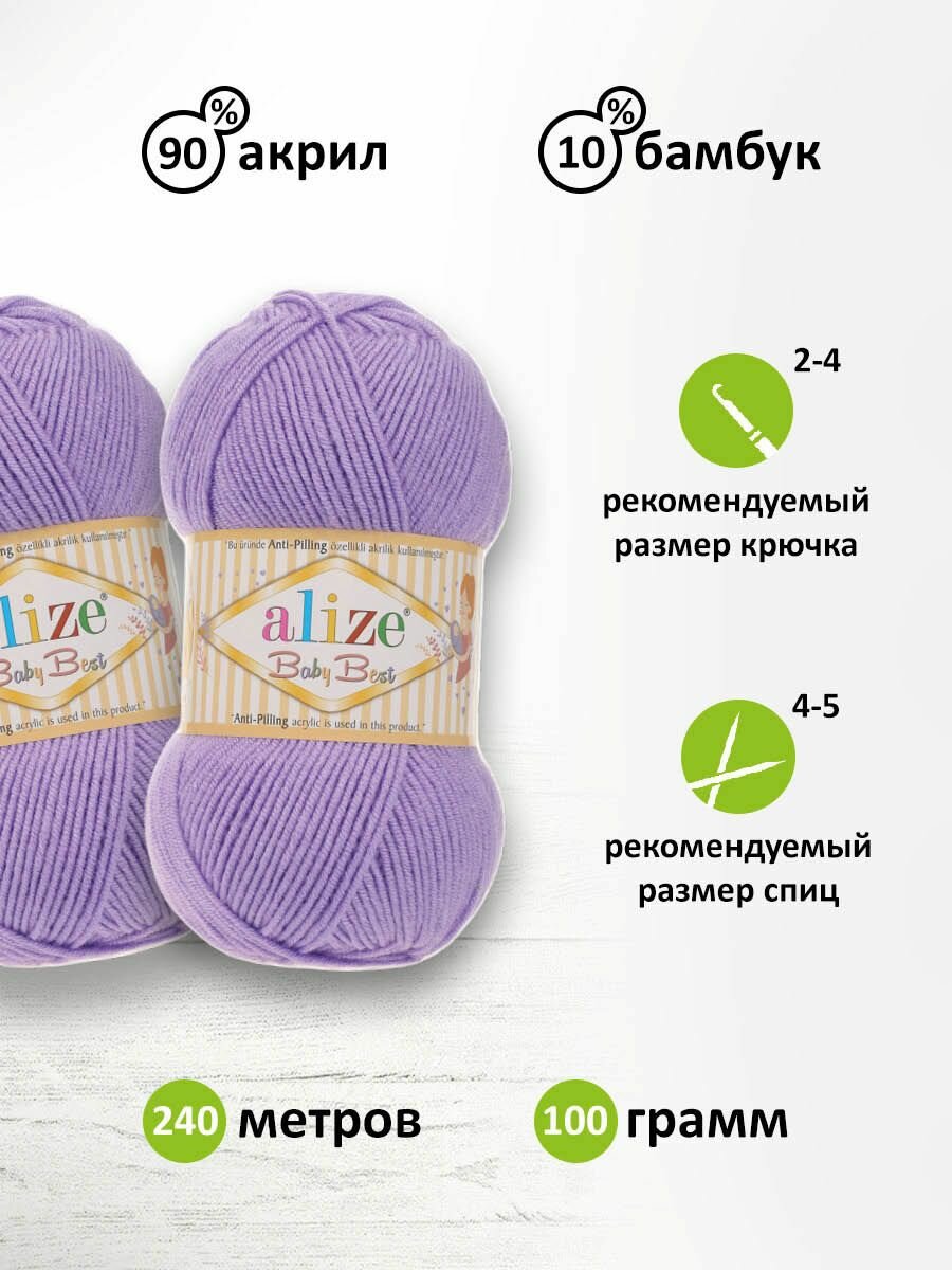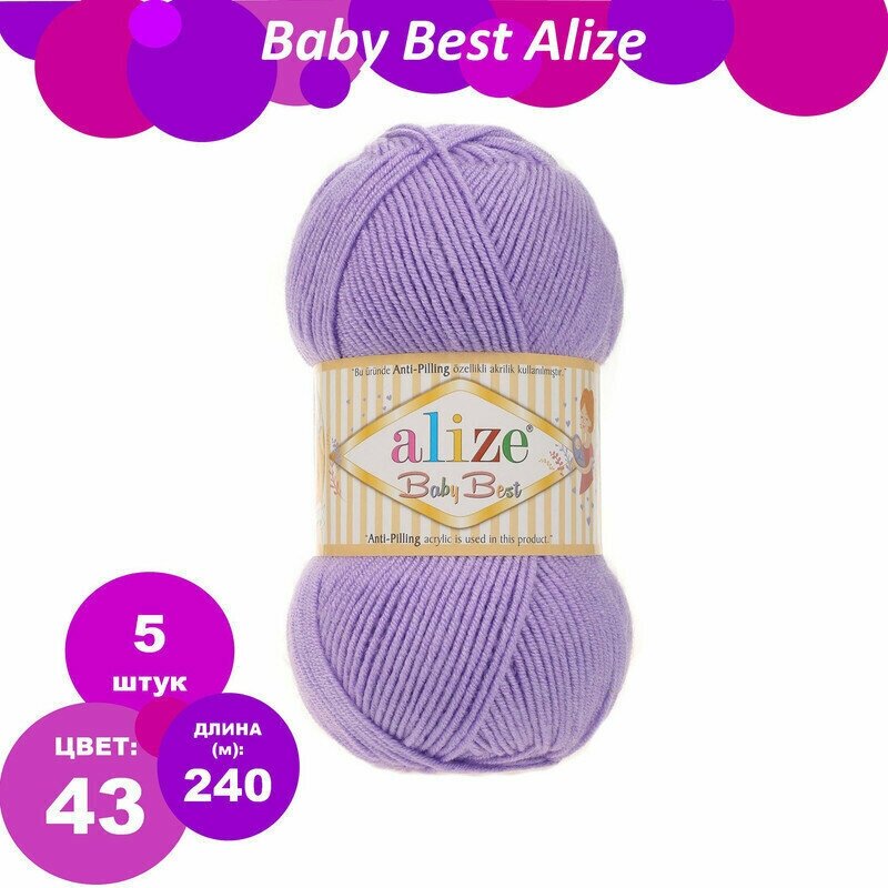 Купить Пряжа Alize Baby best сирень (43), 90%акрил/10%бамбук, 240м, 100г, 5шт