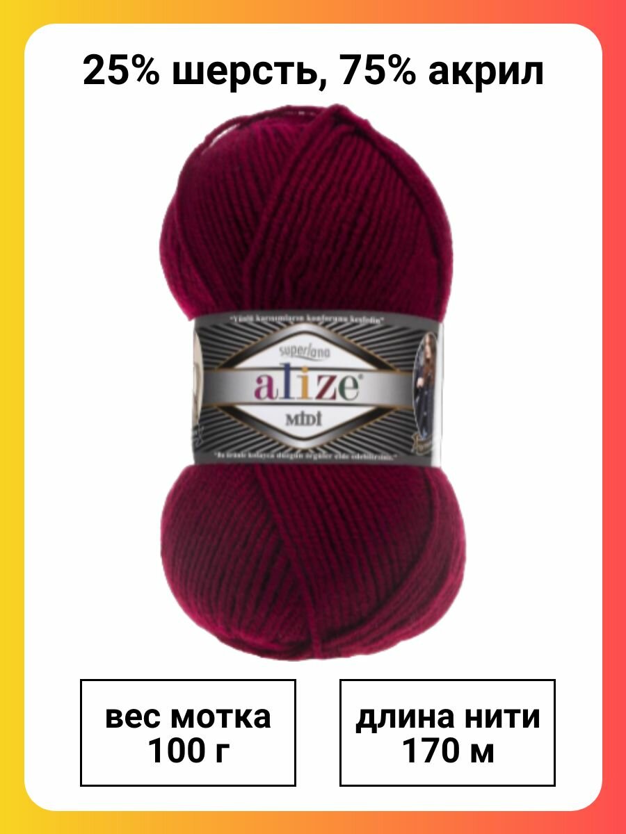 Купить Пряжа Alize Superlana Midi 390 вишня, 100 г, 170 м, 5 штук