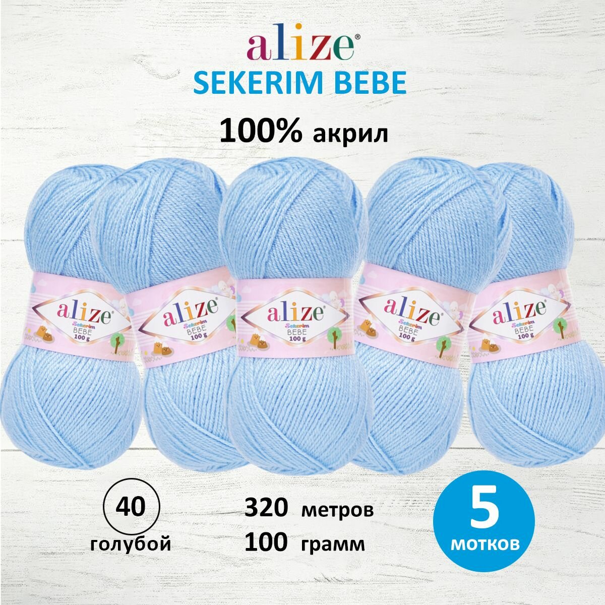 Пряжа ALIZE SEKERIM BEBE, голубой - 40, 100% акрил, 5 мотков, 100 г, 320 м.