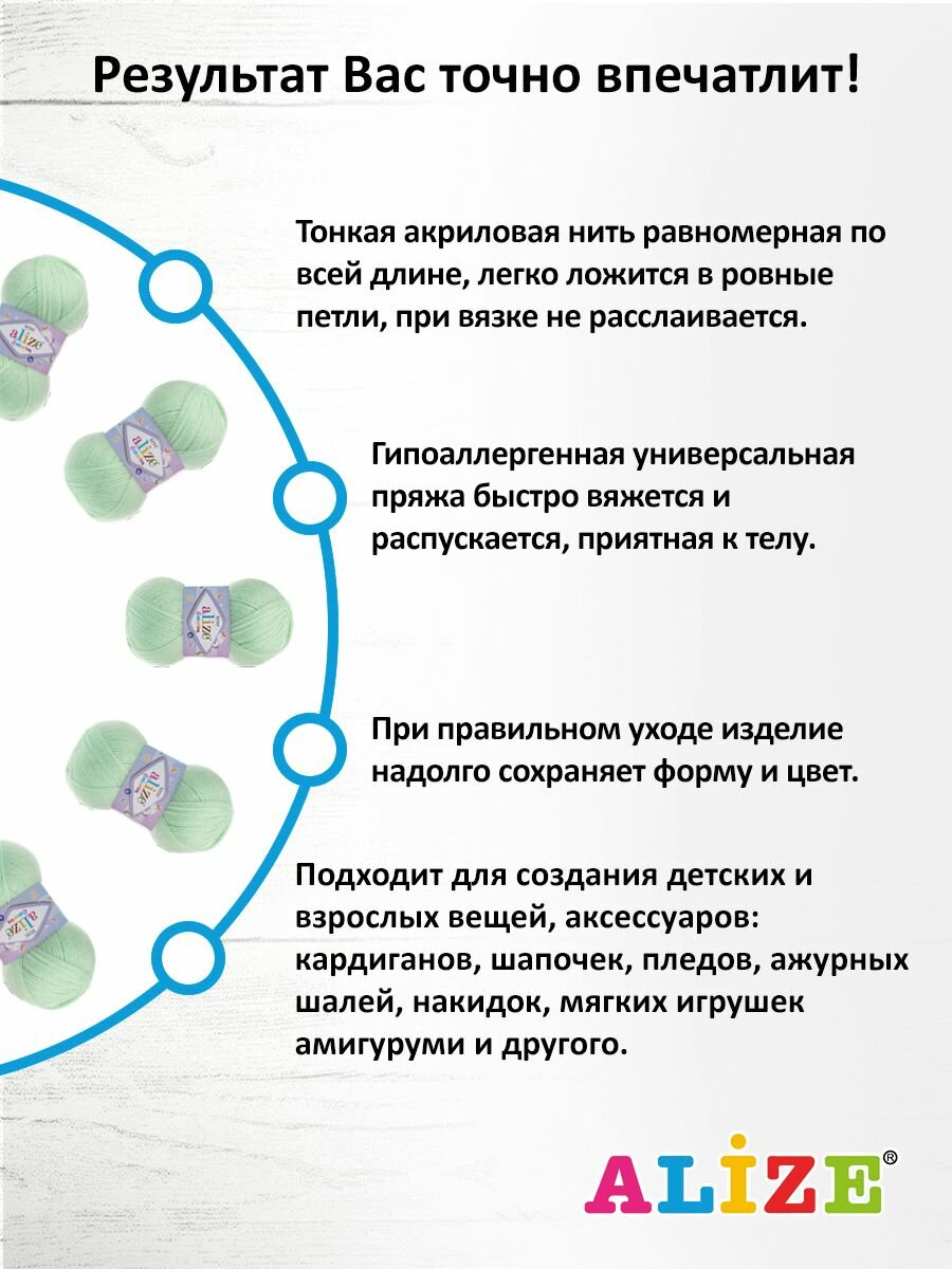 Пряжа для вязания ALIZE 'Sekerim BEBE', 100г, 320м (100% акрил) (188 бледно-зелёный), 5 мотков