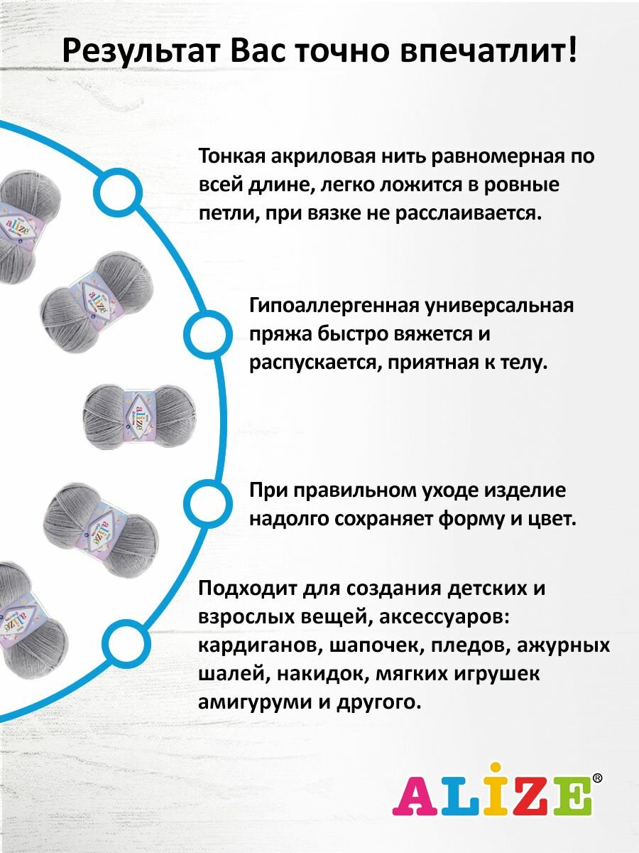 СохранитьПряжа для вязания ALIZE 'Sekerim Bebe', 100г, 320м (100% акрил) (344 серебряно-серый), 5 мотков интересное: