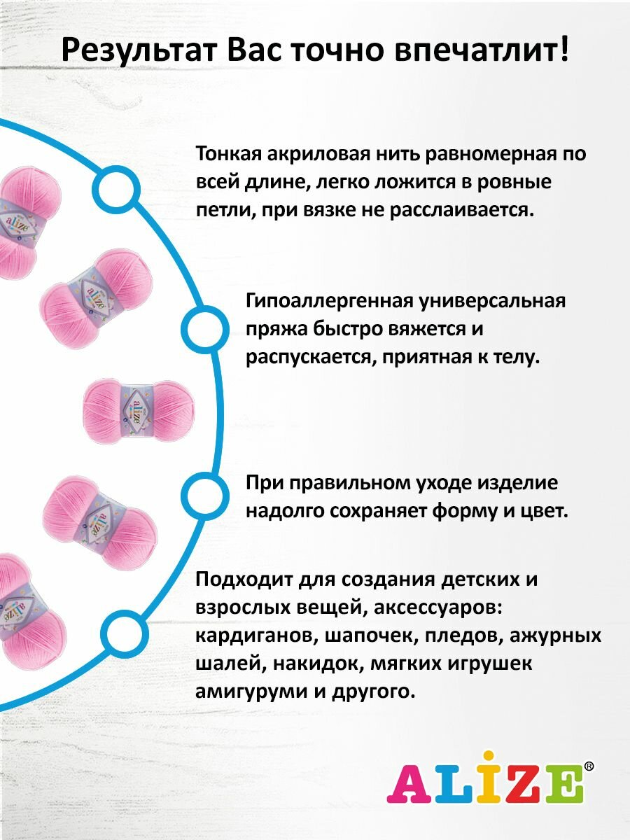 Пряжа для вязания Alize Sekerim Bebe 798 бугенвиллия, 100 г, 320 м, 5 штук