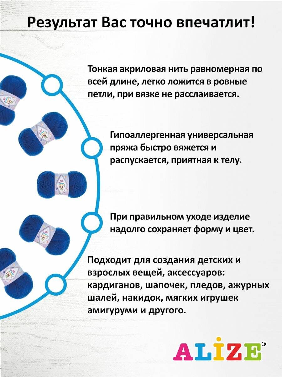 Пряжа для вязания ALIZE 'Sekerim BEBE', 100г, 320м (100% акрил) (289 тёмно-голубой), 5 мотков
