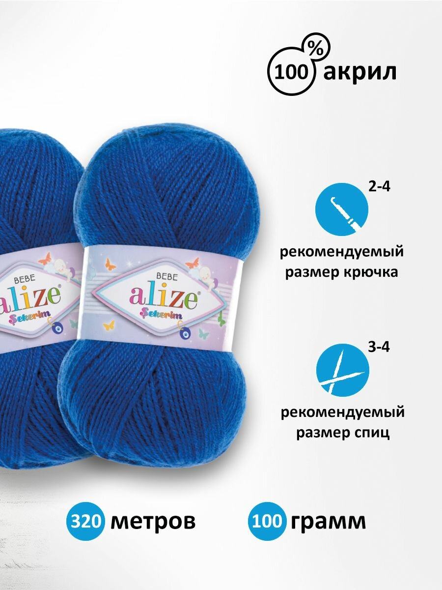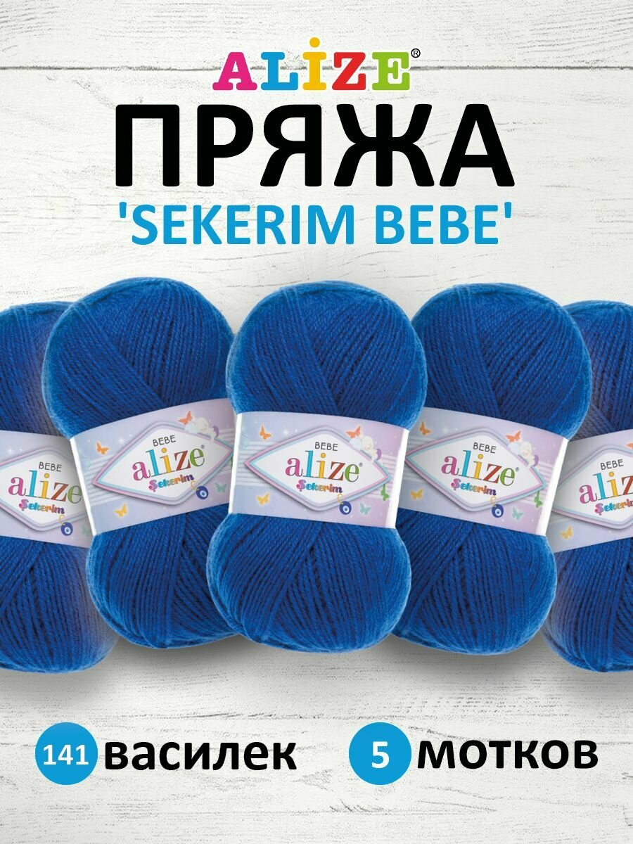 Пряжа для вязания Alize Sekerim Bebe (Шекерим Беби) - 5 мотков 141 василек, детская гипоаллергенная, 100% акрил, 320м/100г
