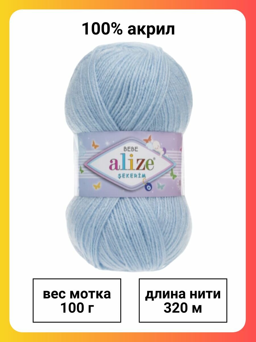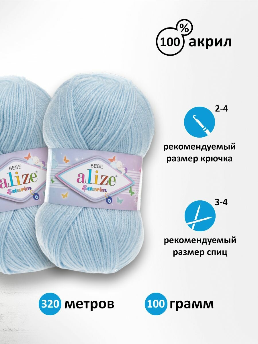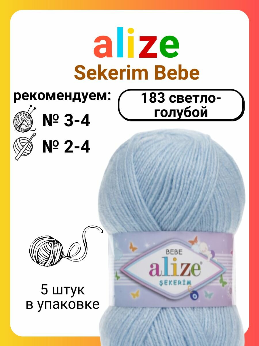 Пряжа ALIZE SEKERIM BEBE, бл. голубой - 183, 100% акрил, 5 мотков, 100 г, 320 м.