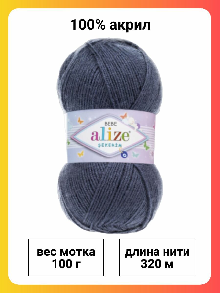 Пряжа Alize Sekerim Bebe Стальной (344) 1 моток 100 г/320 м (100% акрил) ализе шекерим бебе