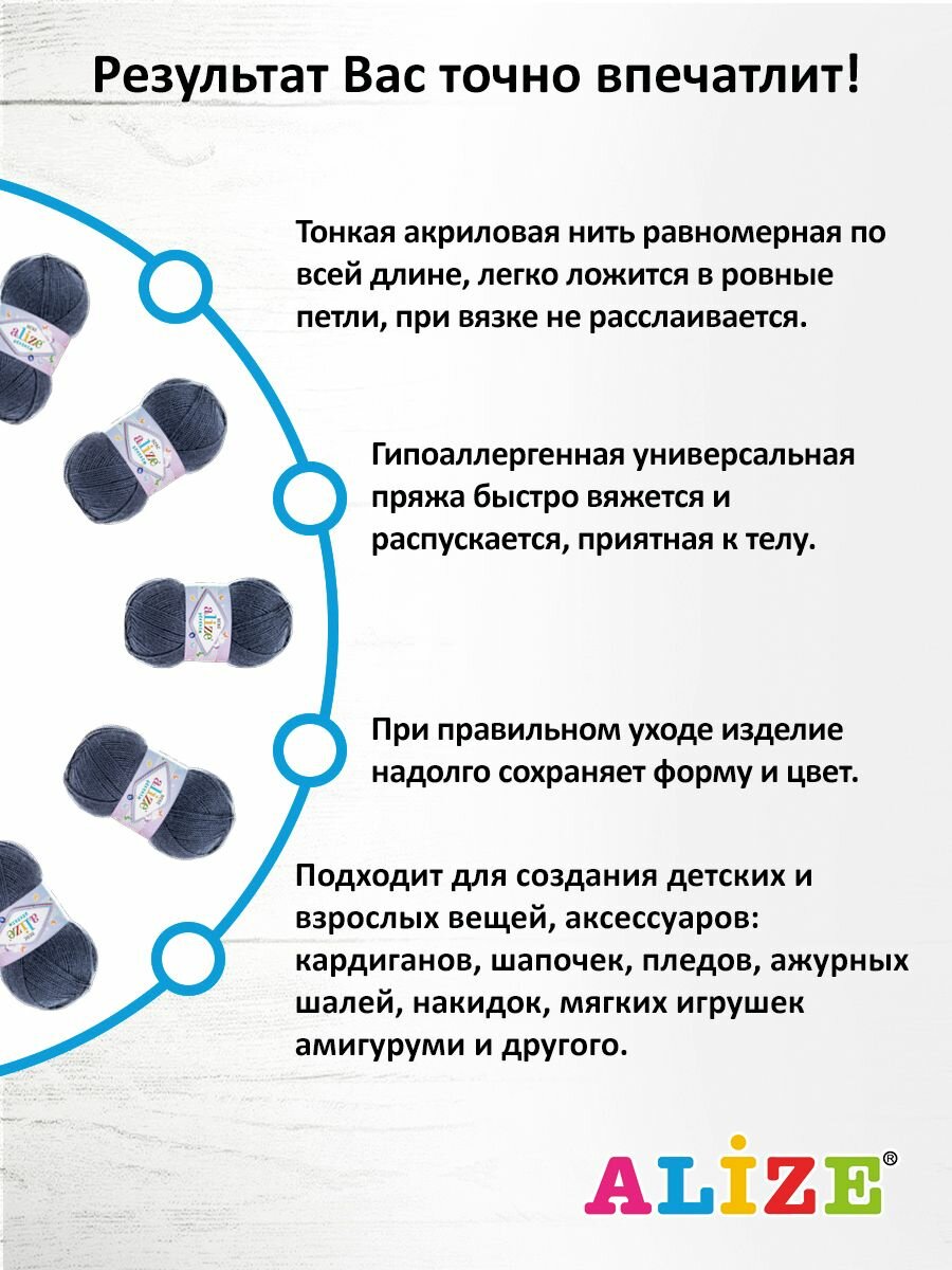 Пряжа для вязания ALIZE 'SEKERIM BEBE' 100 г, 320 м (100% акрил) (58 тёмно-синий), 5 мотков