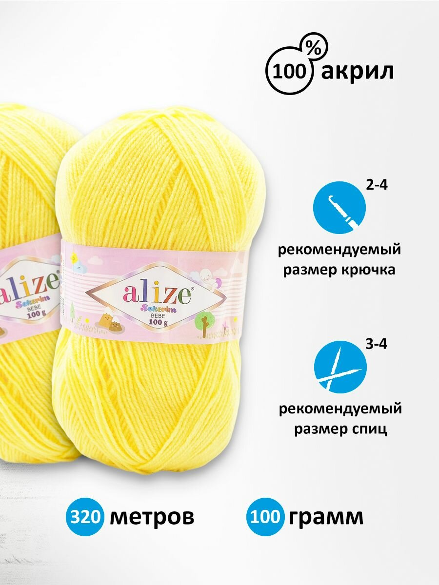 Пряжа для вязания Alize Sekerim Bebe (Шекерим Беби) - 1 моток 187 светло-желтый, детская гипоаллергенная, 100% акрил, 320м/100г