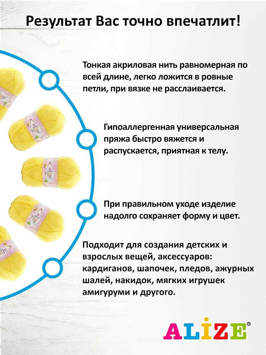 СохранитьПряжа для вязания ALIZE 'Sekerim Bebe', 100г, 320м (100% акрил) (187 светло-жёлтый), 5 мотков интересное: