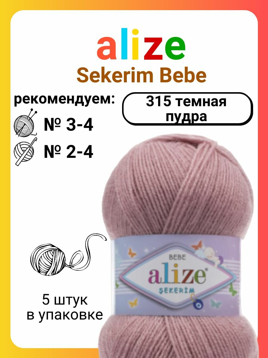 Купить Пряжа для вязания Alize Sekerim Bebe 315 темная пудра, 100 г, 320 м, 5 штук