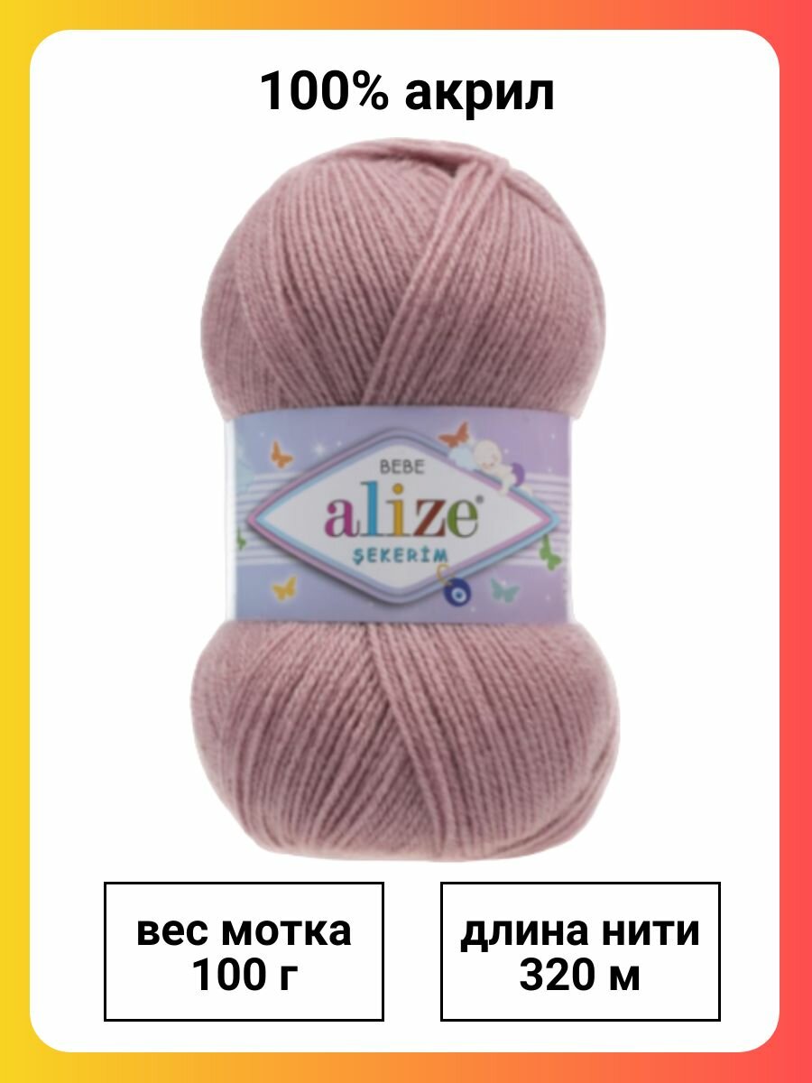 Пряжа ALIZE SEKERIM BEBE, яр. сухая роза - 28, 100% акрил, 5 мотков, 100 г, 320 м.