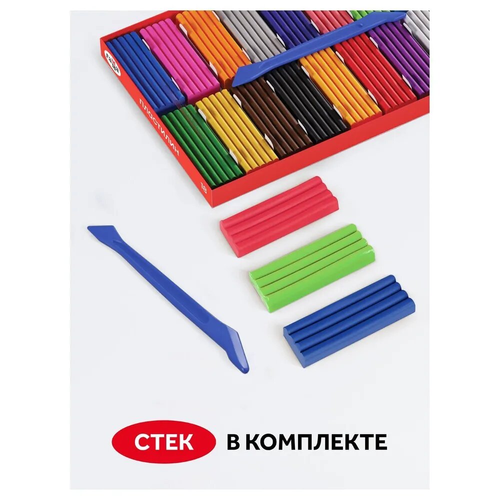 | Комплектация | набор цветного пластилина / 18 цветов; пластиковый стек |