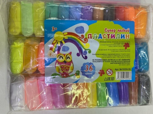 Пластилин супер легкий воздушный застывающий 36 цветов, 360 г, 3 стека